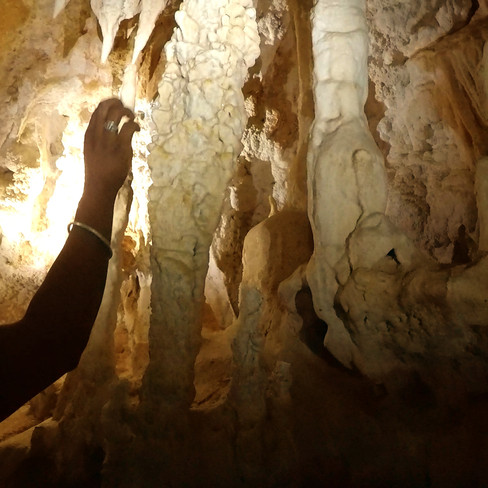 Dann bekamen wir Schutzhelme auf, mit einer Stirnlampe, denn als Nächstes ging es tief nach unten in eine Grotte. Vorsichtig kletterten wir hinab in die Tiefe, die unerwartet schwül warm war! Unter den Tsingys befinden sich Höhlen, die jetzt in der Trockenzeit begehbar waren, aber in der Regenzeit komplett mit Wasser gefüllt sind. Ein unheimlicher Gedanke, wenn man dabei ist durch diese verzweigten Höhlen zu wandern.